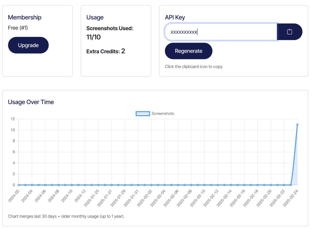 ScreenshotInk is a web-based screenshot capture service that allows you to generate high-quality screenshots of any webpage via our API. It’s perfect for integrating into your applications, monitoring website changes, or building image-based previews.Â